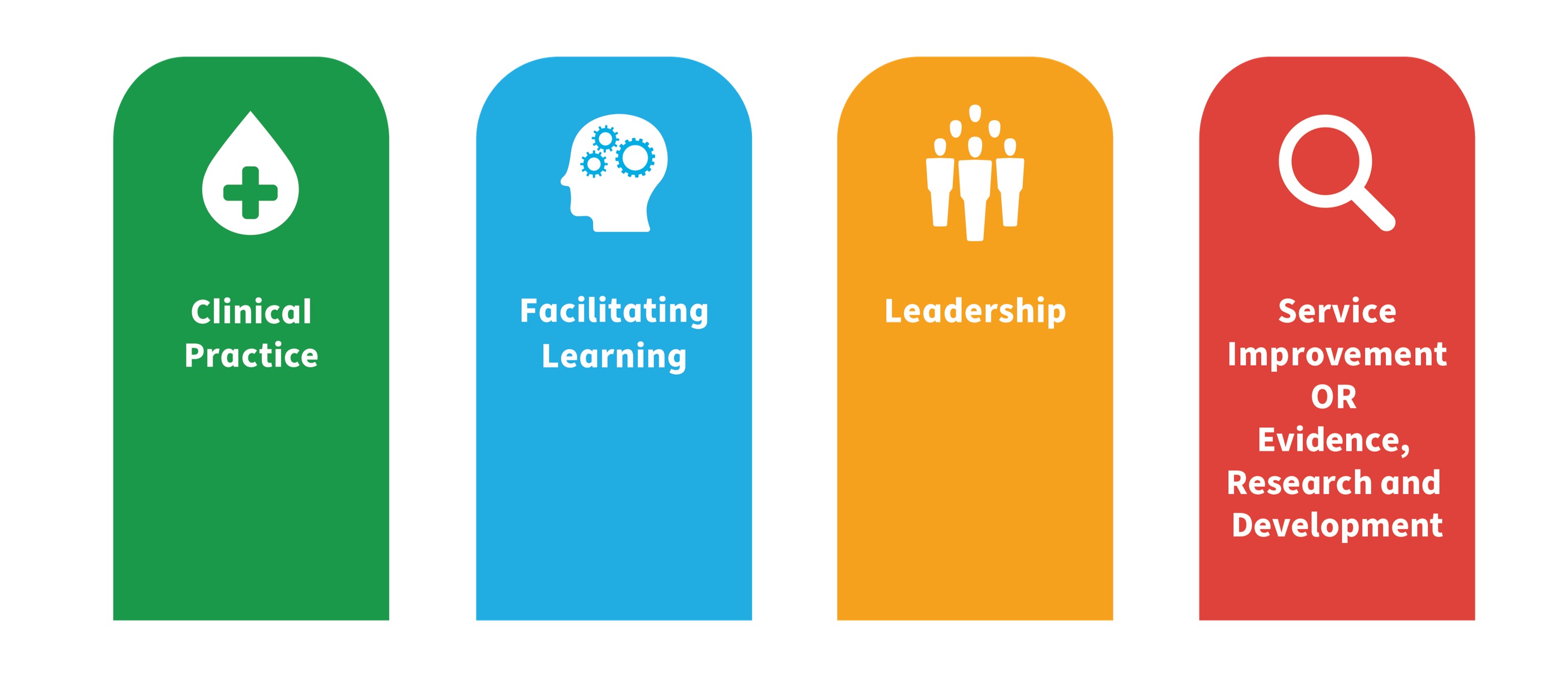 The Framework is structured around 4 interconnected Pillars of Practice. Namely Clinical Practice, Facilitating Learning, Leadership, Service Improvement/ Evidence, Research and Development. The knowledge, skills and behaviours described in the Pillars are common to all NMAHP professions and specialities.